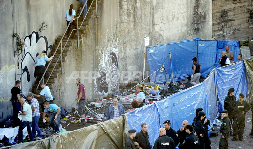 【7月25日 AFP】(一部更新)ドイツ西部のデュイスブルク(Duisburg)で24日、テクノ音楽の野外イベント「ラブ・パレード(Love Parade)」の会場付近で大勢の観客が転倒し、25日までに19人が死亡、340人が負傷した。警察が発表した。