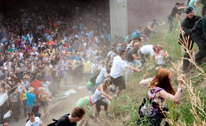 パニックの拡大を防ぐため、すでに会場に入っていた観客には事故の情報が伏せられたため、観客の多くは事故のことを知ることなく夜まで踊り続けたという。ドイツのマスコミにはこの対応を批判する論調もみられた。また、デュイスブルク市長は事故発生の経緯を徹底的に調査すると述べた。(c)AFP