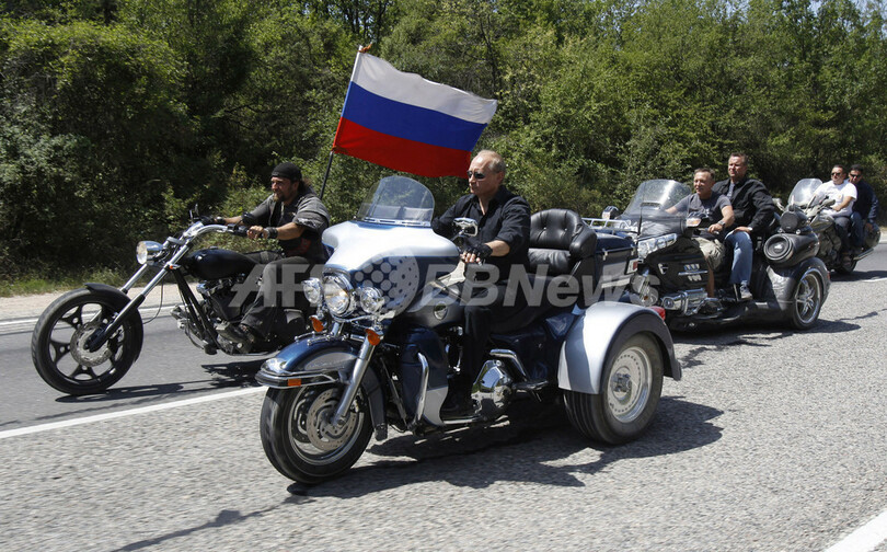 【7月25日 AFP】(写真追加)ウクライナ・セバストポリ(Sevastopol)で24日に開催されたバイク愛好家のイベントに、同国を訪問中だったロシアのウラジーミル・プーチン(Vladimir Putin)首相がハーレー・ダビッドソン(Harley Davidson)にまたがって登場した。プーチン首相は集まった7000人のバイカーたちを「兄弟たち」と呼び、「バイクは自由の象徴だ」とスピーチ。スピード違反をしないよう注意したあと、ウクライナ語で「バイクよ永遠に!」と言って締めくくった。 このイベントは、ロシアのバイクサークル「ナチヌイエ・ボルキ(夜の狼たち、Night Wolves)」が主催した。(c)AFP