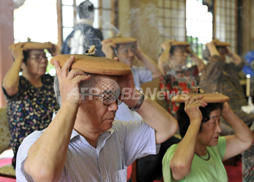 ニュース ライフ これで夏バテ解消へ、頭部にお灸据える「ほうろく灸」 2010年7月27日 9:12 発信地:東京 [ アジア・オセアニア 東京 ] このニュースをシェア ‹ › ❮ 4/6 ❯ 都内の妙円寺で「ほうろく灸」を体験した参拝者(2010年7月26日撮影)。(c)AFP/Yoshikazu TSUNO 画像作成中 ! 【7月27日 AFP】都内にある妙円寺で26日、頭の上でお灸(きゅう)を据える伝統行事「ほうろく灸」が行われた。参拝者は、頭の上にかざした焙烙(ほうろく)の上でもぐさを焚き、健康を祈願した。350年の歴史を持つ「ほうろく灸」は、頭部の熱を冷まし、元気を回復させる効き目があると信じられている。(c)AFP ライフ 一覧へ> メディア・報道関係・法人の方向け 写真・動画 購入のお問合せ>