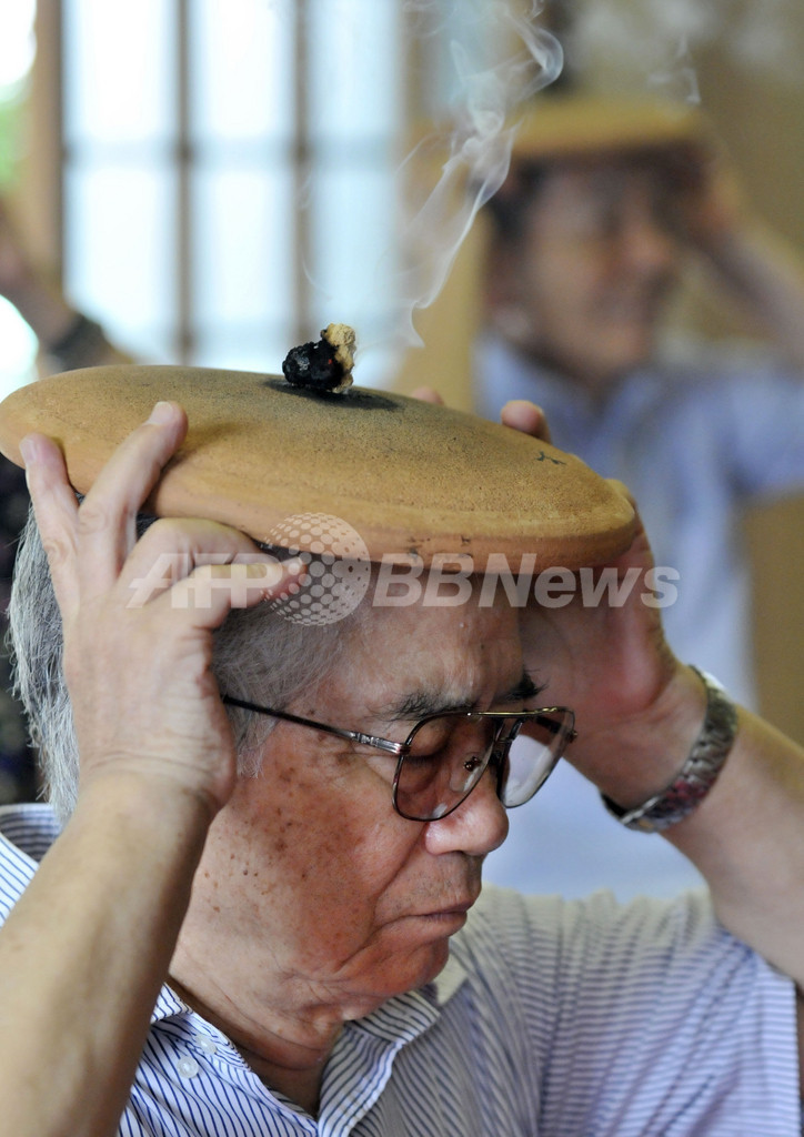 ニュース ライフ これで夏バテ解消へ、頭部にお灸据える「ほうろく灸」 2010年7月27日 9:12 発信地:東京 [ アジア・オセアニア 東京 ] このニュースをシェア ‹ › ❮ 2/6 ❯ 都内の妙円寺で「ほうろく灸」を体験した参拝者(2010年7月26日撮影)。(c)AFP/Yoshikazu TSUNO 画像作成中 ! 【7月27日 AFP】都内にある妙円寺で26日、頭の上でお灸(きゅう)を据える伝統行事「ほうろく灸」が行われた。参拝者は、頭の上にかざした焙烙(ほうろく)の上でもぐさを焚き、健康を祈願した。350年の歴史を持つ「ほうろく灸」は、頭部の熱を冷まし、元気を回復させる効き目があると信じられている。(c)AFP ライフ 一覧へ> メディア・報道関係・法人の方向け 写真・動画 購入のお問合せ>