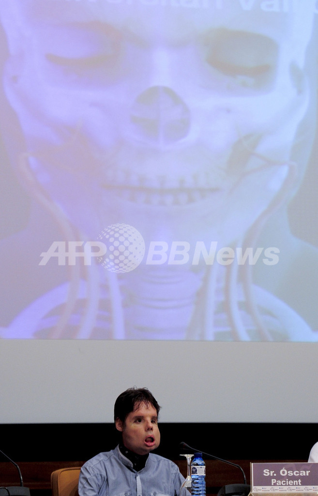 【7月27日 AFP】スペイン・バルセロナ(Barcelona)で26日、世界初の顔面完全移植手術を受けた男性が記者会見を行い、テレビカメラの前で、医師や顔面を提供したドナーの家族に感謝の言葉を述べた。