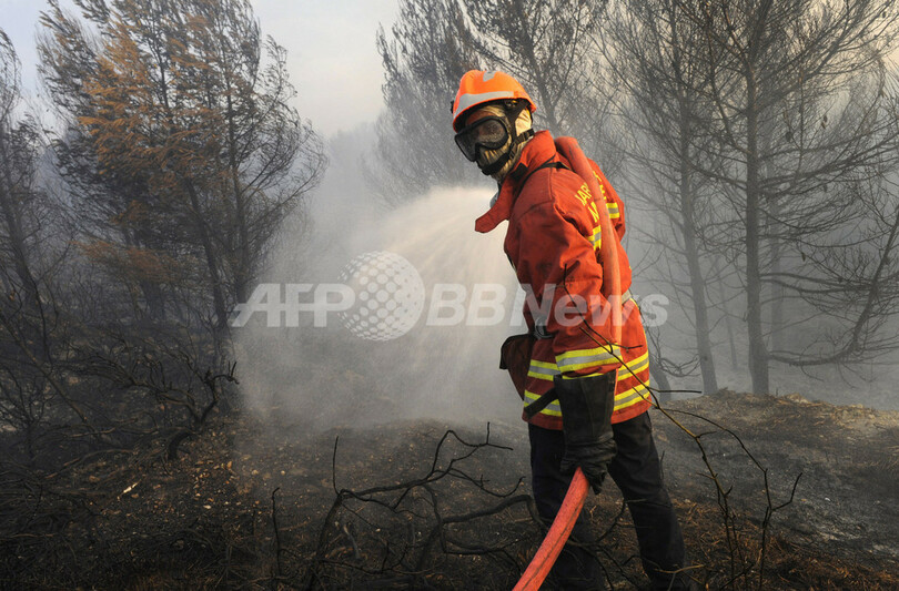 【7月27日 AFP】フランス・マルセイユ(Marseille)近郊のソセ・レ・パン(Sausset-les-Pins)で24日、山火事が発生し、25日までに森林約900ヘクタールが焼失した。南仏では今シーズン初の山火事で、600人以上の消防士と75台の消防車、消防用航空機およびヘリコプターが出動して消火にあたった。(c)AFP