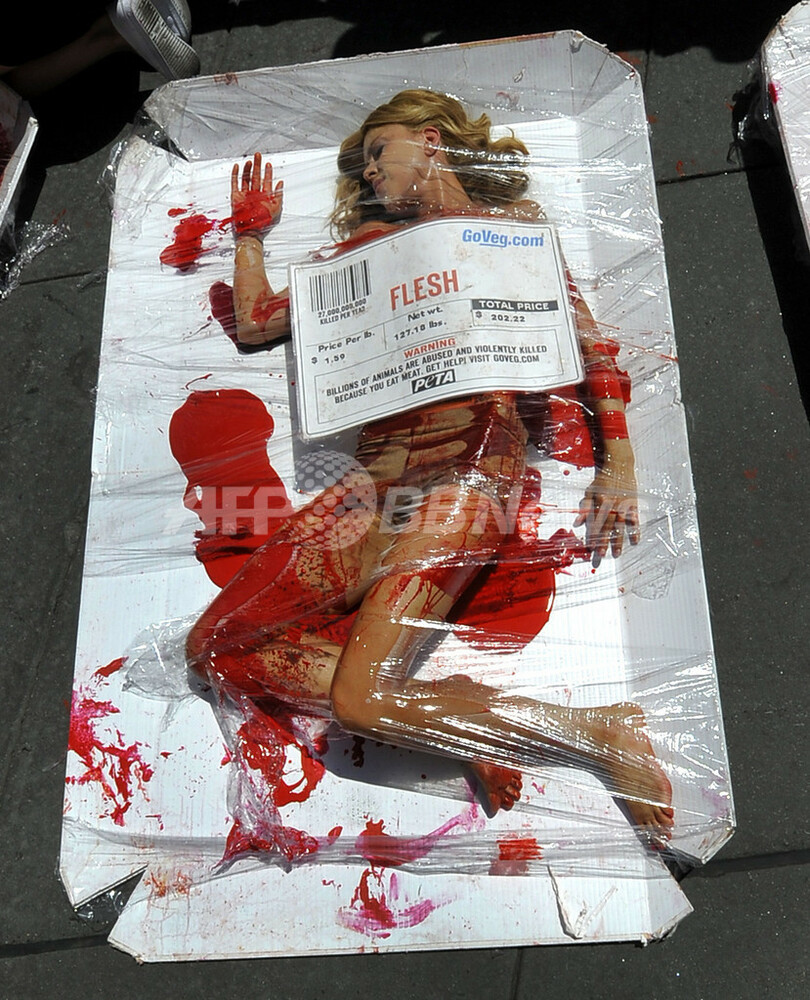 ニュース ライフ こぼれ話 PETA、巨大精肉パックで肉食に抗議 NY 2010年7月28日 10:56 発信地:ニューヨーク/米国 [ 北米 米国 ] このニュースをシェア ‹ › ❮ 1/7 ❯ ニューヨーク(New York)のタイムズスクエア(Times Square)で27日、国際動物愛護団体PETA(動物の倫理的扱いを求める人々の会)が肉食への抗議活動を行った。メンバーらは大きなトレーに裸で横たわり、透明なビニールで覆われた。その上には、「あなたが肉を食べるために、数十億頭の動物たちが虐待され、暴力的に殺されている」と書かれた巨大な価格ステッカーが張られていた(2010年7月27日撮影)。(c)AFP/TIMOTHY A. CLARY 画像作成中 ! 【7月28日 AFP】ニューヨーク(New York)のタイムズスクエア(Times Square)で27日、国際動物愛護団体PETA(動物の倫理的扱いを求める人々の会)が肉食への抗議活動を行った。メンバーらは大きなトレーに裸で横たわり、透明なビニールで覆われた。その上には、「あなたが肉を食べるために、数十億頭の動物たちが虐待され、暴力的に殺されている」と書かれた巨大な価格ステッカーが張られていた。(c)AFP ライフ 一覧へ> メディア・報道関係・法人の方向け 写真・動画 購入のお問合せ>