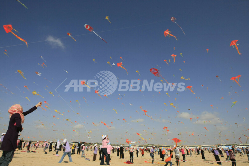 【7月30日 AFP】パレスチナ自治区ガザ市(Gaza City)で29日、「一斉たこ揚げ」のギネス世界記録(Guinness World Record)に挑戦するイベントが、国連パレスチナ難民救済事業機関(UNRWA)の主催で行われた。