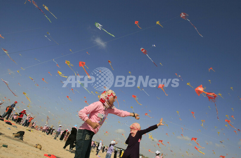 【7月30日 AFP】パレスチナ自治区ガザ市(Gaza City)で29日、「一斉たこ揚げ」のギネス世界記録(Guinness World Record)に挑戦するイベントが、国連パレスチナ難民救済事業機関(UNRWA)の主催で行われた。