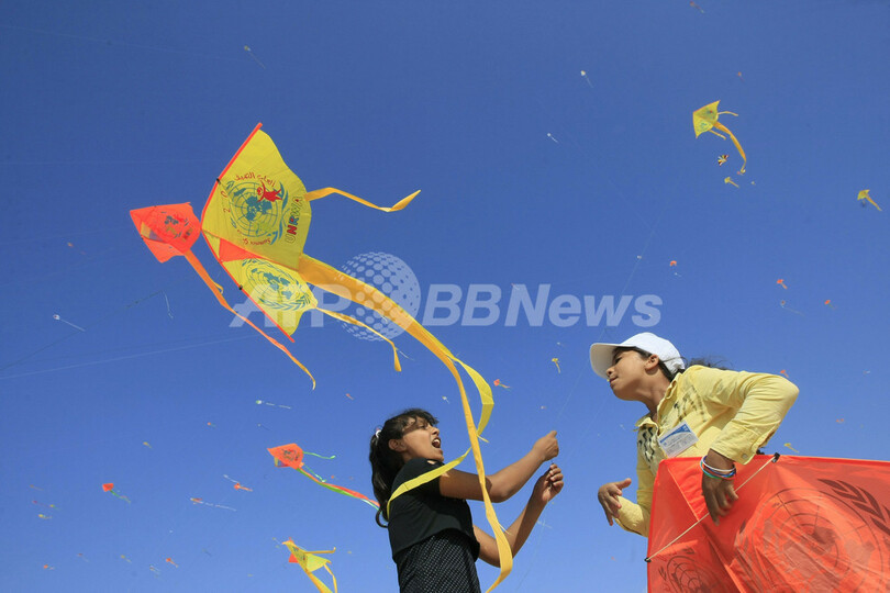 【7月30日 AFP】パレスチナ自治区ガザ市(Gaza City)で29日、「一斉たこ揚げ」のギネス世界記録(Guinness World Record)に挑戦するイベントが、国連パレスチナ難民救済事業機関(UNRWA)の主催で行われた。