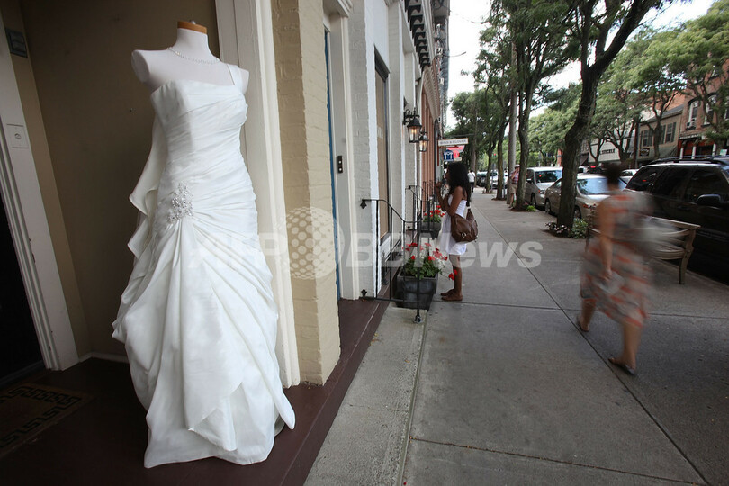 写真はラインベックの店頭に展示されるウェディングドレス(2010年7月30日撮影)。(c)AFP/Getty Images/Mario Tama
