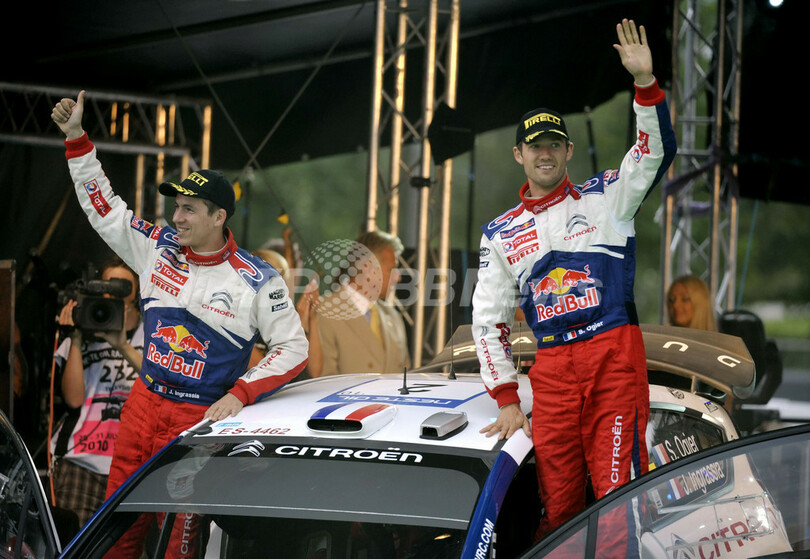 2位にはセバスチャン・オジェ(Sebastien Ogier、フランス)、3位にはセバスチャン・ローブ(Sebastien Loeb、フランス)が入り、シトロエン(Citroen)勢が続いた。(c)AFP