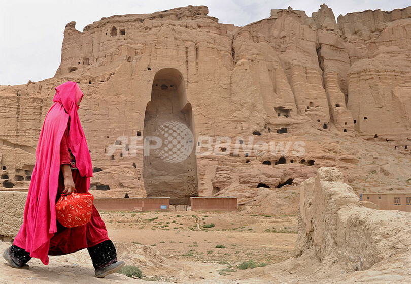 約2000年前の巨大な石の大仏2体で有名だったが、01年、米軍がアフガニスタンを攻撃する数か月前にタリバンによって破壊されてしまった(2010年8月1日撮影)。(c)AFP/SHAH Marai