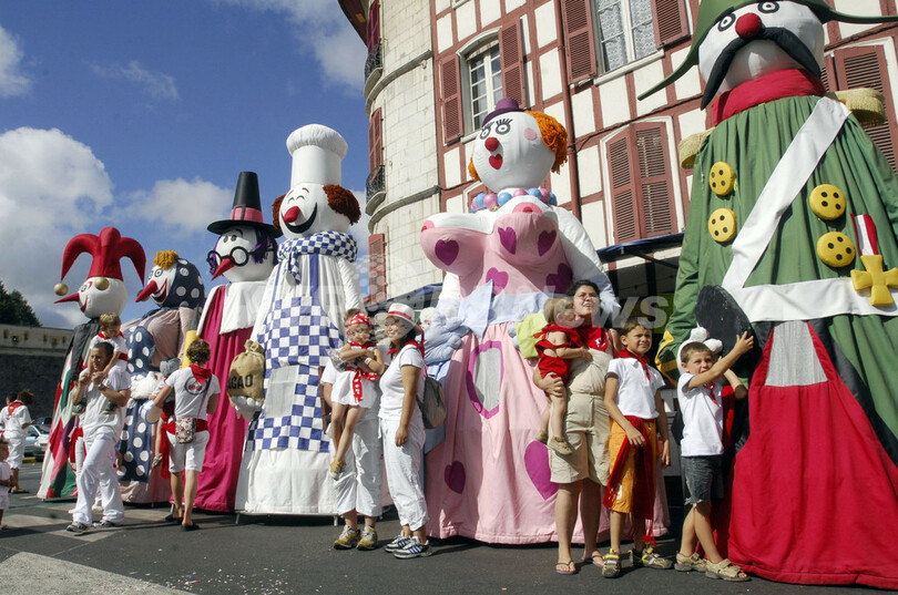 ニュース ライフ フランスの夏祭り「バイヨンヌ祭」、白と赤の衣装で 2010年8月3日 16:28 発信地:バイヨンヌ/フランス [ ヨーロッパ フランス ] このニュースをシェア ‹ › ❮ 5/7 ❯ フランス南西部のバイヨンヌ(Bayonne)で、前月28日から開かれていた恒例の夏祭り「バイヨンヌ祭(Fêtes de Bayonne)」が1日、閉幕した。祭りの期間中は闘牛のほか、白服に赤い帽子や帯といった伝統的な衣装に身を包んだ人びとによるコンサートやパレードが繰り広げられた。写真は、バイヨンヌの町を練り歩く巨大人形(2010年7月30日撮影)。(c)AFP/GAIZKA IROZ 画像作成中 ! 【8月3日 AFP】フランス南西部のバイヨンヌ(Bayonne)で、前月28日から開かれていた恒例の夏祭り「バイヨンヌ祭(Fêtes de Bayonne)」が1日、閉幕した。祭りの期間中は闘牛のほか、白服に赤い帽子や帯といった伝統的な衣装に身を包んだ人びとによるコンサートやパレードが繰り広げられた。(c)AFP ライフ 一覧へ> メディア・報道関係・法人の方向け 写真・動画 購入のお問合せ>