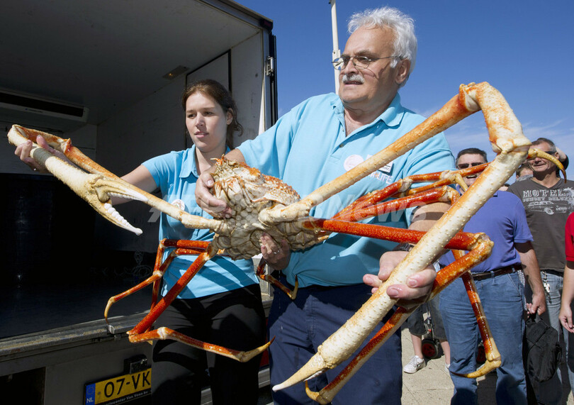 ニュース ライフ こぼれ話 世界最大か、4メートルのタカアシガニ オランダ 2010年8月4日 10:41 発信地:スヘーベニンゲン/オランダ [ ヨーロッパ オランダ ] このニュースをシェア ‹ › ❮ 2/2 ❯ オランダ・ハーグ(Hague)近郊の水族館「シーライフ・スヘーベニンゲン(Sea Life Scheveningen)」で、世界最大と見られるタカアシガニ「Crabzilla」をもつ職員(2010年8月3日撮影)。(c)AFP/ANP/MARCEL ANTONISSE 画像作成中 ! 【8月4日 AFP】前年に太平洋で捕獲された全長約4メートルの巨大タカアシガニが3日、オランダ・ハーグ(Hague)近郊の水族館「シーライフ・スヘーベニンゲン(Sea Life Scheveningen)」に移送された。「Crabzilla」というニックネームのついたこのタカアシガニは、推定40歳。世界最大のタカアシガニと見られている。(c)AFP ライフ 一覧へ> メディア・報道関係・法人の方向け 写真・動画 購入のお問合せ>