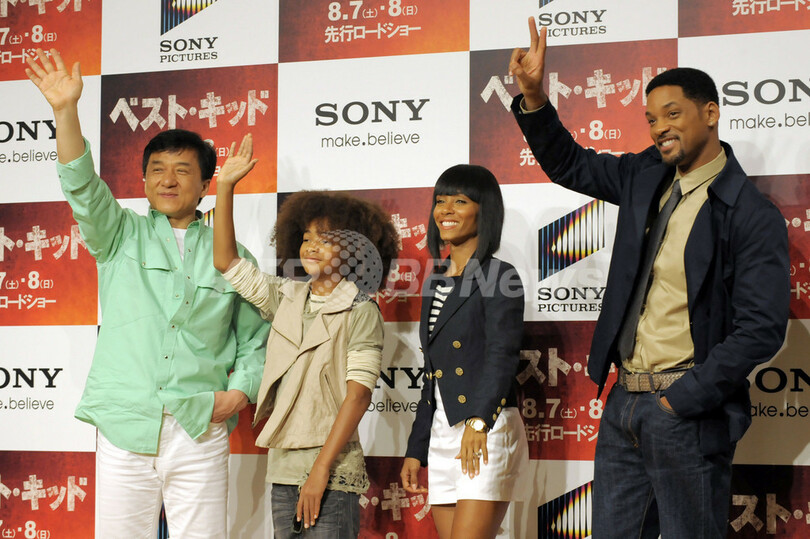 【8月6日 AFP】1984年のヒット作をリメイクした米映画『ベスト・キッド(The Karate Kid)』の記者会見が行われ、主演のジャッキー・チェン(Jackie Chan)とジェイデン・スミス(Jaden Smith)、ジェイデンの両親で映画のプロデューサーを務めるウィル・スミス(Will Smit)とジェイダ・ピンケット・スミス(Jada Pinkett Smith)夫妻が出席した。