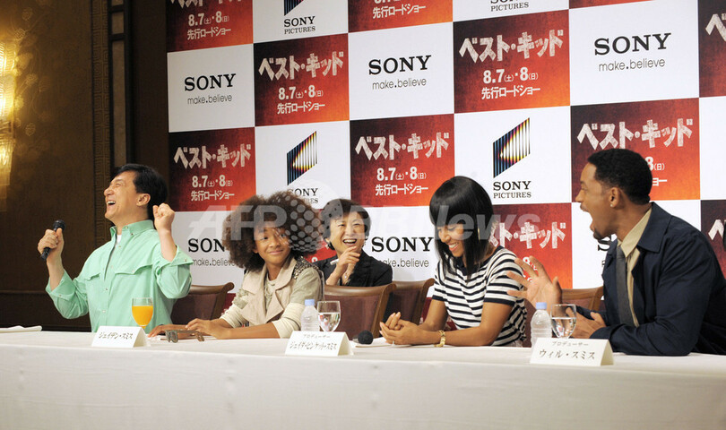 【8月6日 AFP】1984年のヒット作をリメイクした米映画『ベスト・キッド(The Karate Kid)』の記者会見が行われ、主演のジャッキー・チェン(Jackie Chan)とジェイデン・スミス(Jaden Smith)、ジェイデンの両親で映画のプロデューサーを務めるウィル・スミス(Will Smit)とジェイダ・ピンケット・スミス(Jada Pinkett Smith)夫妻が出席した。