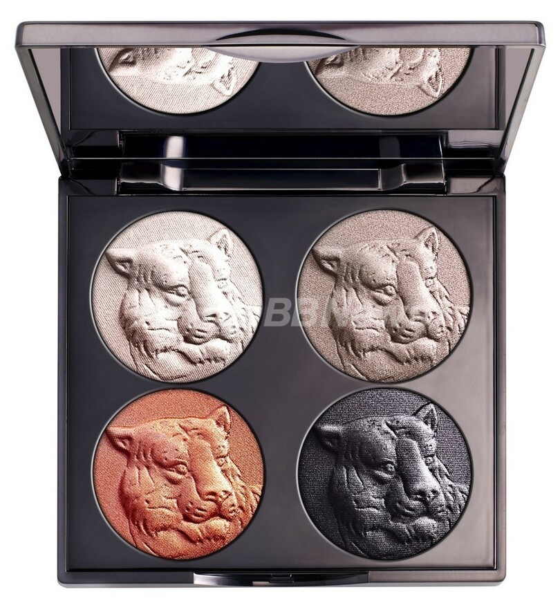 シーズンのキーカラー、グレイ、ピューター、クリーム、パーシモンの4色で、凛としたルックをつくるアイ&チークパレット。野生のタイガーのエンボスが描かれたアートのようなパレットは、シャンテカイユが毎シーズン発売する自然環境保護支援アイテム。売り上げの一部は、野生動物保護団体「トラフィック(TRAFFIC)」に寄付される。