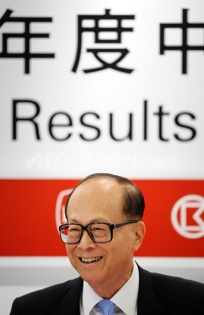 李嘉誠氏の推定資産総額は213億米ドル(約1兆8200億円)。港湾や地所、通信、公共事業などで巨万の富を得た。李氏は、2月に米経済誌「フォーブス(Forbes)」に香港一の富豪に認定された。また、同誌によれば李氏の資産は2009年に50億米ドル(約4300億円)増えた。(c)AFP