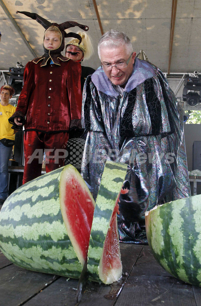ニュース ライフ こぼれ話 ハンガリーの夏の風物詩、スイカ祭り 2010年8月11日 9:59 発信地:Medgyesegyhaza/ハンガリー [ ヨーロッパ ハンガリー ] このニュースをシェア ‹ › ❮ 1/3 ❯ ハンガリー南東部の町Medgyesegyhazaで開かれたスイカ祭りで、巨大なスイカを切る男性(2010年8月8日撮影)。(c)AFP 画像作成中 ! 【8月11日 AFP】ハンガリー南東部の町Medgyesegyhazaで、6~8日の3日間、スイカ祭りが開かれた。1995年からの恒例行事となった祭りだが、今年はコンサートやコンテストのほか市場も開かれ、合計約2万5000人がルーマニアとの国境に近いこの小さな町を訪れた。オーストラリアやカナダなど遠方からの来場者も見られた。(c)AFP ライフ 一覧へ> メディア・報道関係・法人の方向け 写真・動画 購入のお問合せ>