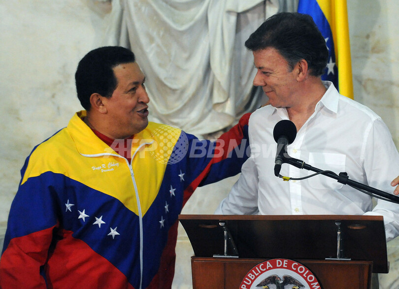 【8月11日 AFP】ベネズエラのウゴ・チャベス(Hugo Chavez)大統領と7日に就任したコロンビアのフアン・マヌエル・サントス(Juan Manuel Santos)新大統領が10日、カリブ海に面したコロンビアのサンタマルタ(Santa Marta)で会談し、共同声明で両国の国交を回復すると発表した。