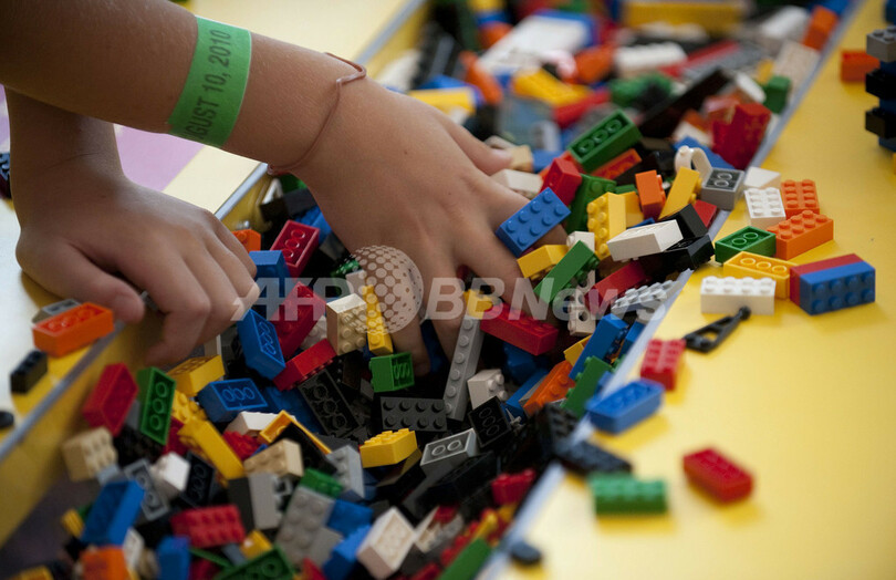 写真は、同展会場でレゴブロックで遊ぶ子ども(2010年8月10日撮影)。(c)AFP/Jim WATSON