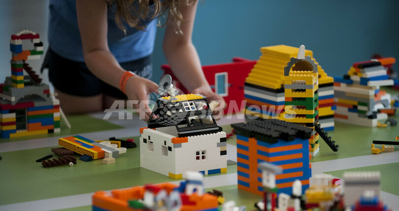 写真は、同展会場でレゴブロックで遊ぶ子ども(2010年8月10日撮影)。(c)AFP/Jim WATSON