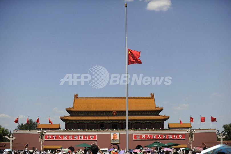 北京(Beijing)の天安門広場(Tiananmen Square)では、集まった約1万人が特別に実施された国旗掲揚式を見守ったほか、各地で追悼行事が行われた。深夜零時の直後に多くのウェブサイトのホームページがモノクロ表示になり、15日付の新聞各紙がカラー印刷を取りやめた。