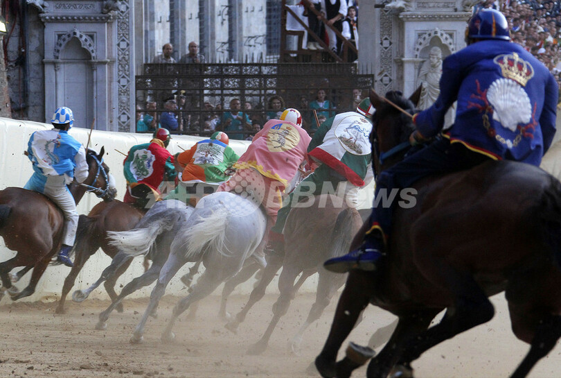 ニュース ライフ 伝統競馬「パリオ」、カンポ広場で開催 イタリア 2010年8月18日 11:36 発信地:シエナ/イタリア [ ヨーロッパ イタリア ] このニュースをシェア ‹ › ❮ 7/9 ❯ イタリア・トスカーナ地方の町、シエナ(Siena)のカンポ広場(Piazza del Campo)で16日、伝統競馬「パリオ(Palio)」が開催された。パリオは年2回、同広場で開催され、騎手は鞍(くら)なしで馬に乗り、会場に設置されたコースを1周して競う。写真は、カンポ広場で開催される「パリオ」(2010年8月16日撮影)。(c)AFP/FABIO MUZZI 画像作成中 ! 【8月18日 AFP】イタリア・トスカーナ地方の町、シエナ(Siena)のカンポ広場(Piazza del Campo)で16日、伝統競馬「パリオ(Palio)」が開催された。パリオは年2回、同広場で開催され、騎手は鞍(くら)なしで馬に乗り、会場に設置されたコースを1周して競う。(c)AFP ライフ 一覧へ> メディア・報道関係・法人の方向け 写真・動画 購入のお問合せ>