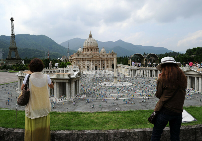 【8月18日 AFP】栃木県日光市にあるテーマパーク「東武ワールドスクエア(Tobu World Square)」は、国連教育科学文化機関(ユネスコ、UNESCO)の世界遺産45か所を含む世界各地の102の有名建築物を25分の1の縮尺で再現し、展示している。(c)AFP