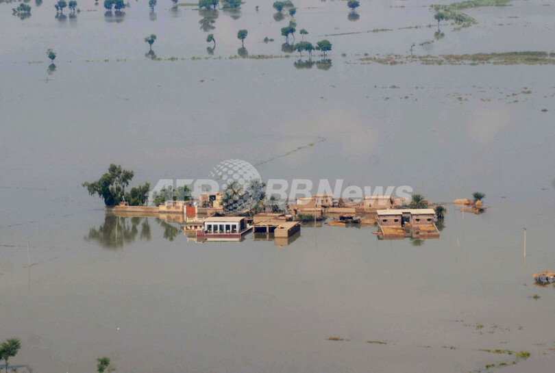 うだるように暑いテント暮らしや路上での生活を強いられている被災者らは、政府の対応の遅さに怒りの声をあげている。複数のチャリティー団体は、パキスタンはテロ組織と関連があるとのイメージが一部にあることも、支援活動の妨げになっていると指摘する。(c)AFP/Emmanuel Duparcq