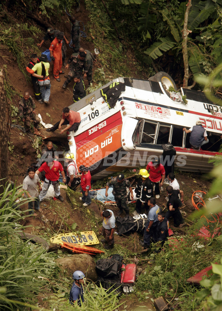 Baguio)近郊で18日、乗客ら49人が乗ったバスが谷に転落し、外国人5人を含む41人が死亡した。警察当局が19日明らかにした。
