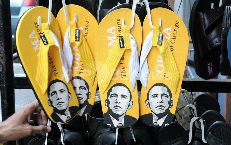 【8月19日 AFP】バラク・オバマ(Barrack Obama)米大統領の絵が印刷されたビーチサンダルが、インド・ムンバイ(Mumbai)中心部にある靴店「カンブル・シューズ(Kamble Shoes)」でよく売れている。サンダルは中国製で、価格は1足249ルピー(約460円)。前週だけで100足近く売れ、店に残っているのは4足だけ。同店は需要が大きいとして、ビーチサンダルを追加注文したという。(c)AFP