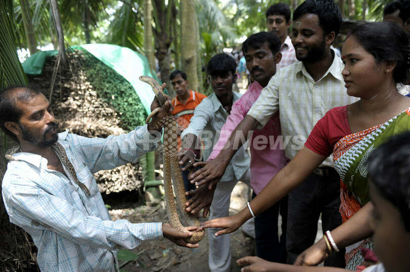 ニュース ライフ ヘビの見本市、インド 2010年8月19日 18:54 発信地:コルカタ/インド [ アジア・オセアニア インド ] このニュースをシェア ‹ › ❮ 5/7 ❯ インド・コルカタ(Kolkata)の北方80キロにあるKhadaitalaで17日、ヘビの見本市が開かれ、訪れた多くのヘビ使いでにぎわった。見本市は毎年、ヒンズー暦の縁起の良い日に開催され、ヘビが展示販売される。見本市ではヒンズー教のヘビ神「マナサー(Manasha)」が祭られる。写真は、ヘビ使いの持つヘビに触れる来場者(2010年8月17日撮影)。(c)AFP/Deshakalyan CHOWDHURY 画像作成中 ! 【8月19日 AFP】インド・コルカタ(Kolkata)の北方80キロにあるKhadaitalaで17日、ヘビの見本市が開かれ、訪れた多くのヘビ使いでにぎわった。見本市は毎年、ヒンズー暦の縁起の良い日に開催され、ヘビが展示販売される。見本市ではヒンズー教のヘビ神「マナサー(Manasha)」が祭られる。(c)AFP ライフ 一覧へ> メディア・報道関係・法人の方向け 写真・動画 購入のお問合せ>