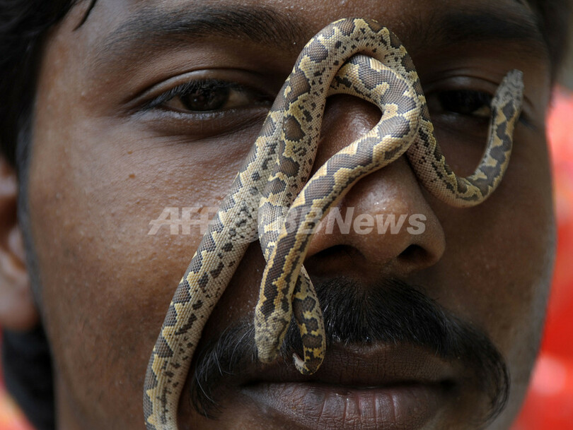 ニュース ライフ ヘビの見本市、インド 2010年8月19日 18:54 発信地:コルカタ/インド [ アジア・オセアニア インド ] このニュースをシェア ‹ › ❮ 3/7 ❯ インド・コルカタ(Kolkata)の北方80キロにあるKhadaitalaで17日、ヘビの見本市が開かれ、訪れた多くのヘビ使いでにぎわった。見本市は毎年、ヒンズー暦の縁起の良い日に開催され、ヘビが展示販売される。見本市ではヒンズー教のヘビ神「マナサー(Manasha)」が祭られる。写真は、見本市でヘビを顔にはわせるヘビ使い(2010年8月17日撮影)。(c)AFP/Deshakalyan CHOWDHURY 画像作成中 ! 【8月19日 AFP】インド・コルカタ(Kolkata)の北方80キロにあるKhadaitalaで17日、ヘビの見本市が開かれ、訪れた多くのヘビ使いでにぎわった。見本市は毎年、ヒンズー暦の縁起の良い日に開催され、ヘビが展示販売される。見本市ではヒンズー教のヘビ神「マナサー(Manasha)」が祭られる。(c)AFP ライフ 一覧へ> メディア・報道関係・法人の方向け 写真・動画 購入のお問合せ>