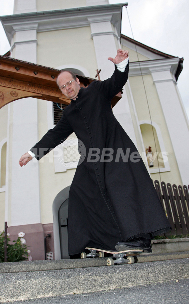 【8月19日 AFP】スロベニアとの国境に近いハンガリーの小さな村に、若い信者たちにスケートボードを教えているローマ・カトリック教会の神父がいる。(c)AFP