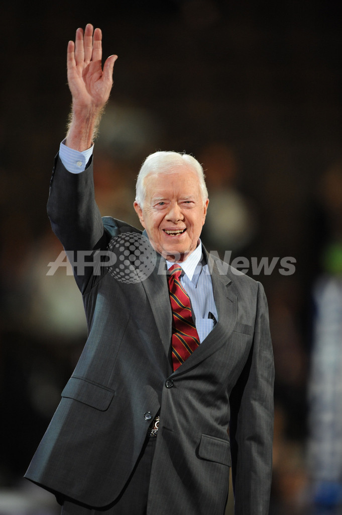 【8月26日 AFP】(写真追加)北朝鮮の国営朝鮮中央通信(Korean Central News Agency、KCNA)によると、ジミー・カーター(Jimmy Carter)米元大統領が25日、空路で平壌(Pyongyang)入りした。北朝鮮で拘束されている米国人男性、アイジャロン・マーリ・ゴメス(Aijalon Mahli Gomes)氏(30)の解放交渉が目的で、26日に連れ帰る見通しだ。