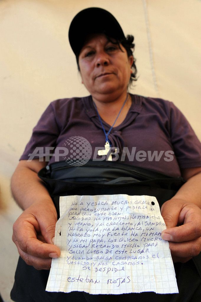 「わたしたちをこの地獄から救い出してほしい。チリ全土の皆さんにお願いする」。作業員のリーダーのルイス・ルイス・ウルスア(Luis Urzua)さんは、地下につながる直径8センチの穴を通して落とされた通信機器に向かって語った。「大統領閣下、どうか頑張ってわたしたちをできるだけ早くここから出してほしい。見捨てないでくれ」