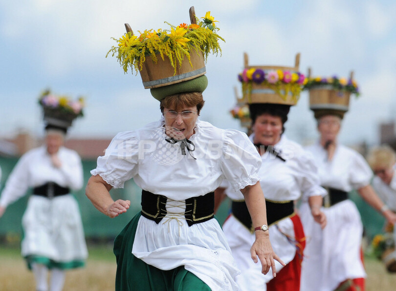 ニュース ライフ こぼれ話 頭にバケツ乗せてレース、ドイツ南部で15世紀から続く伝統行事 2010年8月30日 17:08 発信地:マルクグロニンゲン/ドイツ [ ヨーロッパ ドイツ ] このニュースをシェア ‹ › ❮ 2/2 ❯ ドイツ南部マルクグロニンゲン(Markgroeningen)で行われた伝統行事で、頭にバケツを乗せて走る女性たち(2010年8月28日撮影)。(c)AFP/MARIJAN MURAT 画像作成中 ! 【8月30日 AFP】伝統衣装に身を包んだ女性たちが水の入ったバケツを頭に乗せて走るというレースが28日、ドイツ南部マルクグロニンゲン(Markgroeningen)で開催された。この伝統行事は1445年から続いているという。(c)AFP ライフ 一覧へ> メディア・報道関係・法人の方向け 写真・動画 購入のお問合せ>