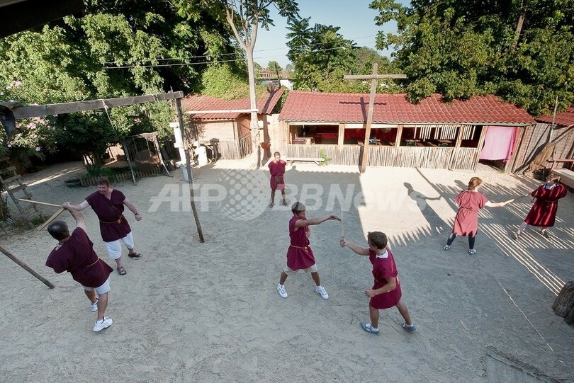 【9月2日 AFP】古代ローマ風のチュニック姿に鉄かぶと、あたかも命のかかった決闘さながらに剣をぶつけ合う――。2人は米ペンシルベニア(Pennsylvania)州からやって来た観光客だ。
