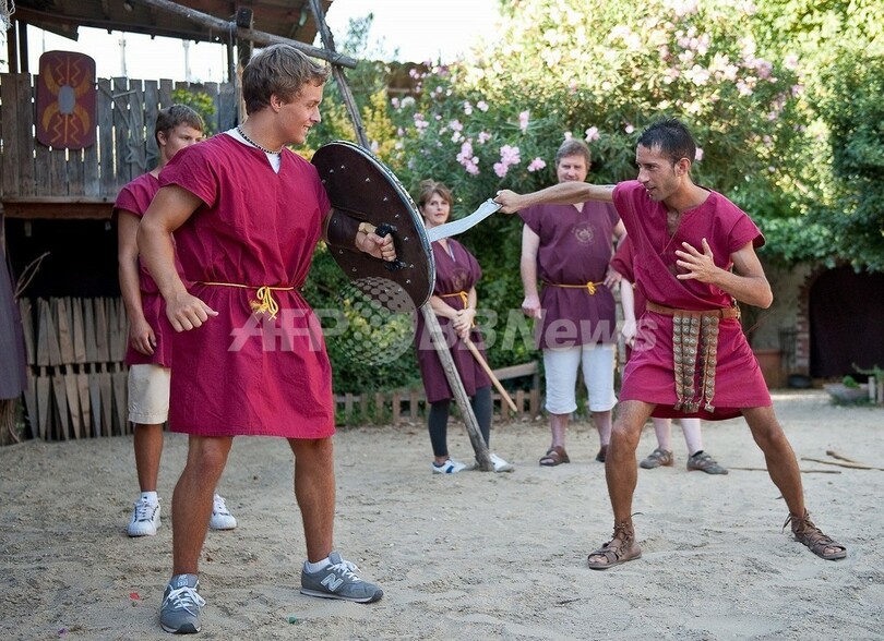 【9月2日 AFP】古代ローマ風のチュニック姿に鉄かぶと、あたかも命のかかった決闘さながらに剣をぶつけ合う――。2人は米ペンシルベニア(Pennsylvania)州からやって来た観光客だ。