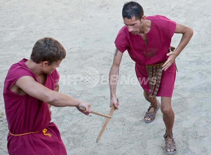 「グラディエーター講座」は2時間で1人100ユーロ(約1万800円)、10人以上のグループで受講すれば25ユーロ(約2600円)となる。(c)AFP/Francoise Kadri