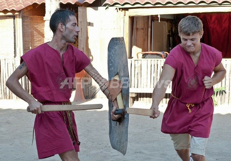 【9月2日 AFP】古代ローマ風のチュニック姿に鉄かぶと、あたかも命のかかった決闘さながらに剣をぶつけ合う――。2人は米ペンシルベニア(Pennsylvania)州からやって来た観光客だ。