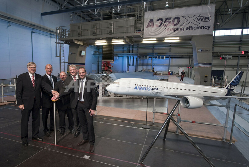 【9月1日 AFP】欧州航空機大手エアバス(Airbus)は8月31日、次世代中型機「A350 XWB」のパーツ製造を開始したことを発表した。A350は米航空機大手ボーイング(Boeing)の次世代ジェット旅客機B787「ドリームライナー(Dreamliner)」に対抗するエアバスのワイドボディ機。