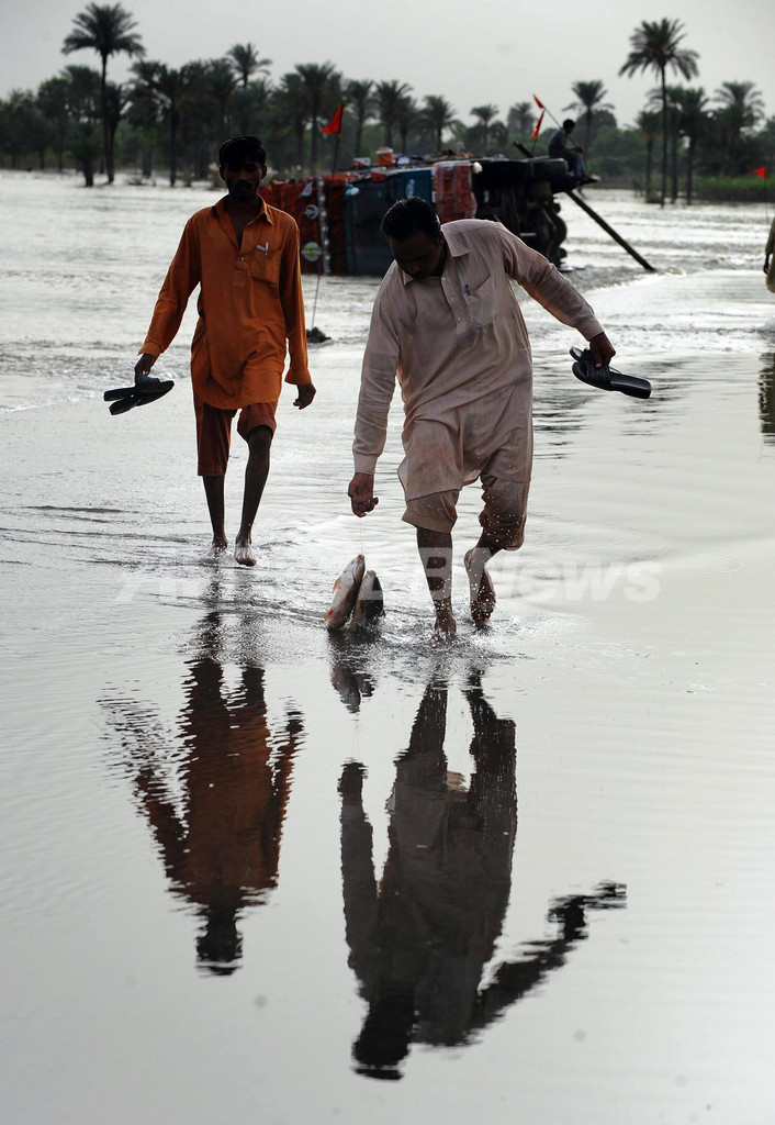 前日の31日には、世界食糧計画(World Food Programme、WFP)のジョゼット・シーラン(Josette Sheeran)事務局長が被災地の視察後に首都イスラマバード(Islamabad )で会見し、「水害の範囲と被害が悪化するにつれ、食糧と作物と収入を失うという『3つの脅威』が同時に起こる恐れがある。もしそうなれば飢餓の危険が高まり、人びとは家を失って、絶望が蔓延する。非常に深刻な状況だ」と強い調子で述べた。