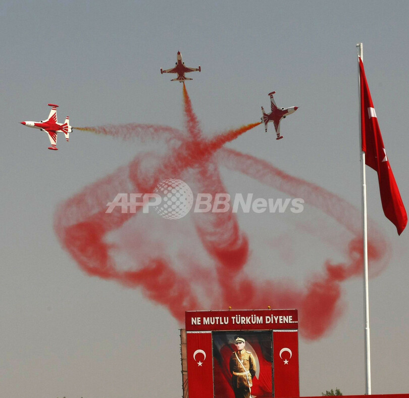 ニュース ライフ トルコ空軍、戦勝記念日にアクロバット飛行 2010年9月2日 14:06 発信地:アンカラ/トルコ [ 中東・北アフリカ トルコ ] このニュースをシェア ‹ › ❮ 6/6 ❯ トルコの首都アンカラ(Ankara)で開かれた戦勝記念日の式典でアクロバット飛行を披露するトルコ空軍のアクロバットチーム「ターキッシュ・スターズ(英名、Turkish Stars)」(2010年8月30日撮影)。(c)AFP/ADEM ALTAN 画像作成中 ! 【9月2日 AFP】トルコ戦勝記念日の8月30日、トルコ空軍のアクロバットチーム「ターキッシュ・スターズ(英名、Turkish Stars)」が首都アンカラ(Ankara)で開かれた記念式典でアクロバット飛行を披露した。トルコは1922年、独立戦争最後の戦いとなったドゥムルプナル(Dumlupinar)の戦いでギリシャに勝利した。(c)AFP ライフ 一覧へ> メディア・報道関係・法人の方向け 写真・動画 購入のお問合せ>