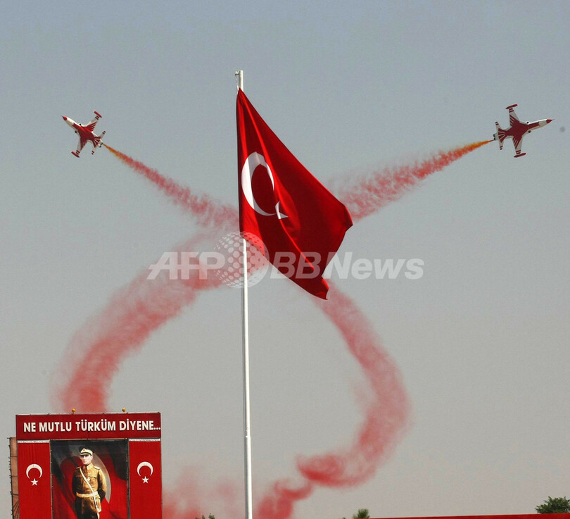 ニュース ライフ トルコ空軍、戦勝記念日にアクロバット飛行 2010年9月2日 14:06 発信地:アンカラ/トルコ [ 中東・北アフリカ トルコ ] このニュースをシェア ‹ › ❮ 5/6 ❯ トルコの首都アンカラ(Ankara)で開かれた戦勝記念日の式典でアクロバット飛行を披露するトルコ空軍のアクロバットチーム「ターキッシュ・スターズ(英名、Turkish Stars)」(2010年8月30日撮影)。(c)AFP/ADEM ALTAN 画像作成中 ! 【9月2日 AFP】トルコ戦勝記念日の8月30日、トルコ空軍のアクロバットチーム「ターキッシュ・スターズ(英名、Turkish Stars)」が首都アンカラ(Ankara)で開かれた記念式典でアクロバット飛行を披露した。トルコは1922年、独立戦争最後の戦いとなったドゥムルプナル(Dumlupinar)の戦いでギリシャに勝利した。(c)AFP ライフ 一覧へ> メディア・報道関係・法人の方向け 写真・動画 購入のお問合せ>