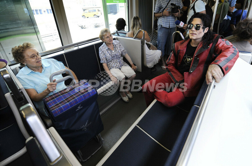 ゾンビの正体は、スペイン各地で上演中のミュージカルに出演する俳優やダンサー。市内を走るトラムに乗り込み、米歌手マイケル・ジャクソン(Michael Jackson)のヒット曲「スリラー(Thriller)」を基にしたミュージカル「フォーエバー・キング・オブ・ポップ(Forever, King of Pop)」をPRした。(c)AFP