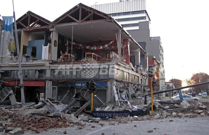 クライトチャーチは同国で第2の人口をもつ都市。地震で建物の倒壊や、ガス管・上下水道管の破裂、停電、橋の損傷などが起きており、被害総額は最高で20億ニュージーランドドル(約1200億円)に上るとみられる。(c)AFP