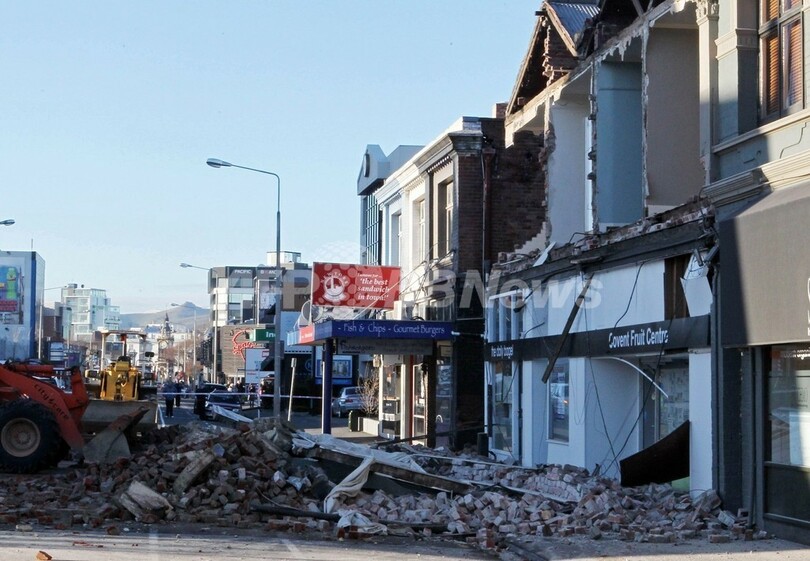 クライトチャーチは同国で第2の人口をもつ都市。地震で建物の倒壊や、ガス管・上下水道管の破裂、停電、橋の損傷などが起きており、被害総額は最高で20億ニュージーランドドル(約1200億円)に上るとみられる。(c)AFP