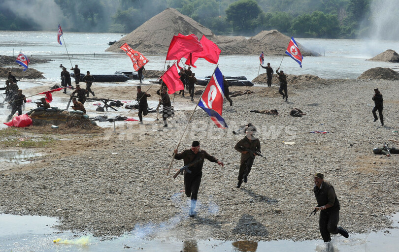 ニュース 戦争・紛争 朝鮮戦争の激戦を再現、韓国 2010年9月5日 12:04 発信地:漆谷郡/韓国 [ 韓国・北朝鮮 韓国 ] このニュースをシェア ‹ › ❮ 16/21 ❯ 韓国の慶尚北道・漆谷郡(Chilgok)にある、朝鮮戦争時の1950年の洛東江の戦闘(Nakdong River Battle)跡地で3日、韓国軍や米軍兵士、退役軍人らが参加し、当時の戦闘を再現する行事が行われた。写真は、北朝鮮兵に扮(ふん)して戦闘を再現する韓国軍兵士(2010年9月3日撮影)。(c)AFP/KIM JAE-HWAN 画像作成中 ! 【9月5日 AFP】韓国の慶尚北道・漆谷郡(Chilgok)にある、朝鮮戦争時の1950年の洛東江の戦闘(Nakdong River Battle)跡地で3日、韓国軍や米軍兵士、退役軍人らが参加し、当時の戦闘を再現する行事が行われた。(c)AFP 戦争・紛争 一覧へ> メディア・報道関係・法人の方向け 写真・動画 購入のお問合せ>