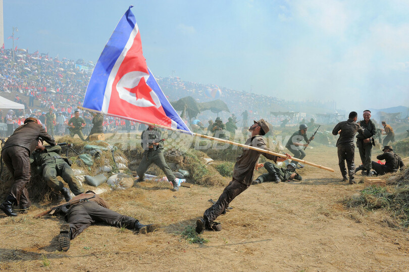 ニュース 戦争・紛争 朝鮮戦争の激戦を再現、韓国 2010年9月5日 12:04 発信地:漆谷郡/韓国 [ 韓国・北朝鮮 韓国 ] このニュースをシェア ‹ › ❮ 10/21 ❯ 韓国の慶尚北道・漆谷郡(Chilgok)にある、朝鮮戦争時の1950年の洛東江の戦闘(Nakdong River Battle)跡地で3日、韓国軍や米軍兵士、退役軍人らが参加し、当時の戦闘を再現する行事が行われた。写真は戦闘を再現する韓国軍兵士(2010年9月3日撮影)。(c)AFP/KIM JAE-HWAN 画像作成中 ! 【9月5日 AFP】韓国の慶尚北道・漆谷郡(Chilgok)にある、朝鮮戦争時の1950年の洛東江の戦闘(Nakdong River Battle)跡地で3日、韓国軍や米軍兵士、退役軍人らが参加し、当時の戦闘を再現する行事が行われた。(c)AFP 戦争・紛争 一覧へ> メディア・報道関係・法人の方向け 写真・動画 購入のお問合せ>