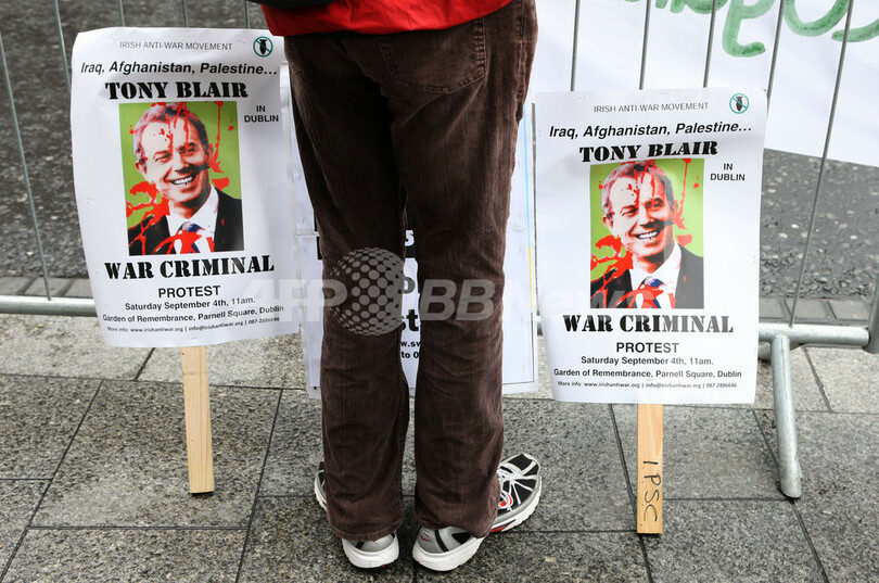 【9月6日 AFP】アイルランド・ダブリン(Dublin)の書店で4日、英国のトニー・ブレア(Tony Blair)元首相の回顧録「A Journey(旅)」のサイン会が行われ、元首相に抗議する活動家ら200人あまりがペットボトルや生卵を投げるなど、周辺は一時騒然となった。